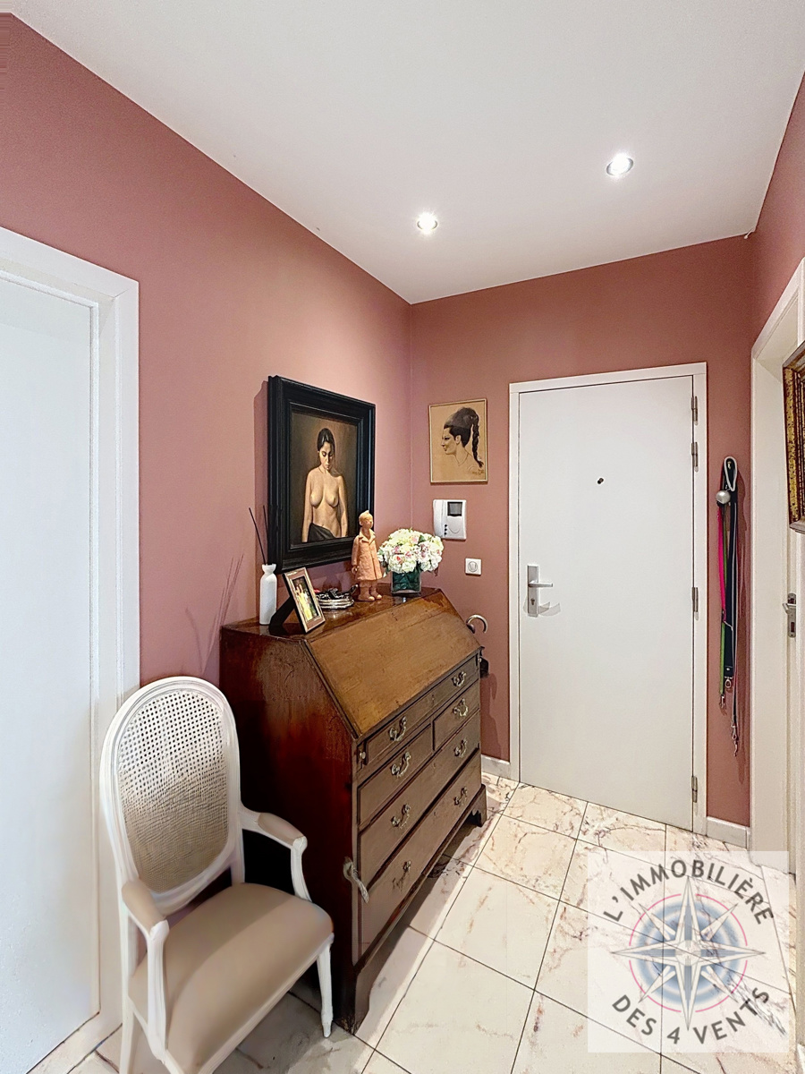 Découvrez ce magnifique appartement aux volumes généreux, idéalement situé dans un environnement calme et verdoyant. Implanté dans un immeuble de standing avec concierge, ce bien rare offre un confort exceptionnel et une configuration particulièrement fonctionnelle. Il se compose d'un hall d'entrée, d’un grand séjour lumineux intégrant un espace bureau, d’un petit salon complémentaire, de deux chambres, de deux salles de bain, de deux cuisines équipées ainsi que de deux WC séparés. L’appartement bénéficie également de deux accès indépendants, d’une terrasse équipée de tentes solaires, de volets, de moustiquaires aux fenêtres, ainsi que de nombreux espaces de rangement, dont un dressing intégré. Une grande cave privative est incluse au sous-sol. Le bien dispose d’un PEB B- et l'électricité est conforme. En option, vous avez la possibilité d’acquérir un emplacement de parking couvert au prix de 30.000 €, comprenant également des rangements supplémentaires. Cet appartement rare sur le marché conviendra parfaitement à ceux qui recherchent de grands volumes, du confort et un environnement de qualité.